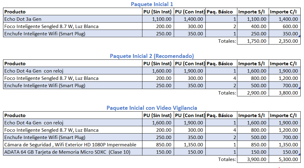 Hemos creado diferentes opciones de paquetes para iniciar a convertir tu hogar en un «Smart Home»